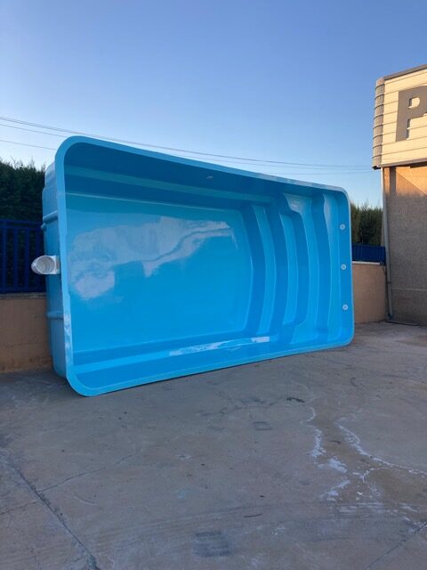 Fabricadas en fibra de vidrio y poliéster, con tejidos intercalados, refuerzos laterales, y perfiles U (de poliéster y metálicos revestidos) a lo largo de todo el perímetro. Se suministran con skimmer, retornos, toma de limpiafondos y desagüe.